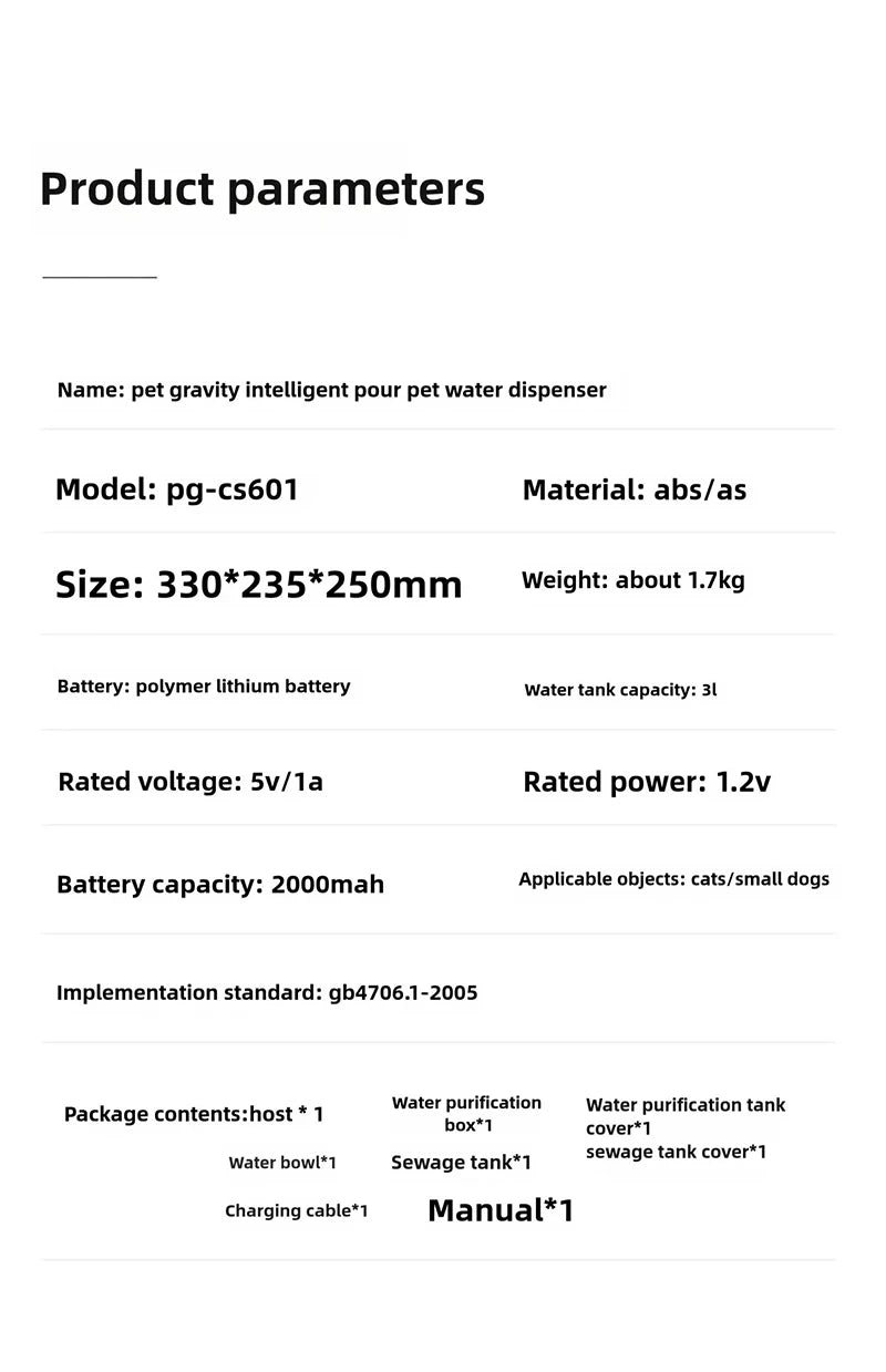 Battery capacity: 2000mAh Dispenser cat water fountain